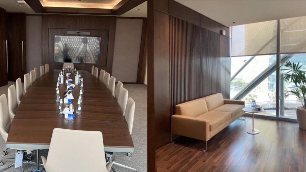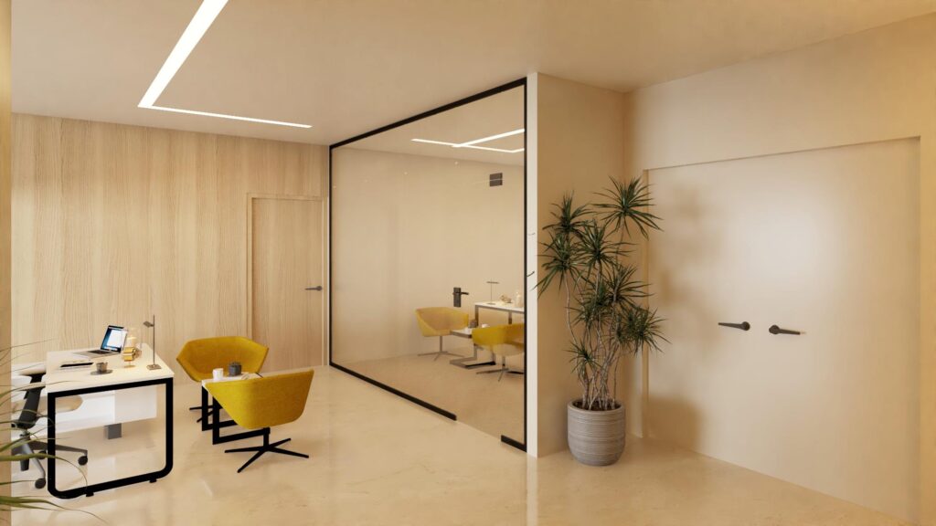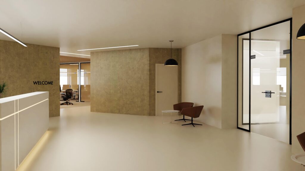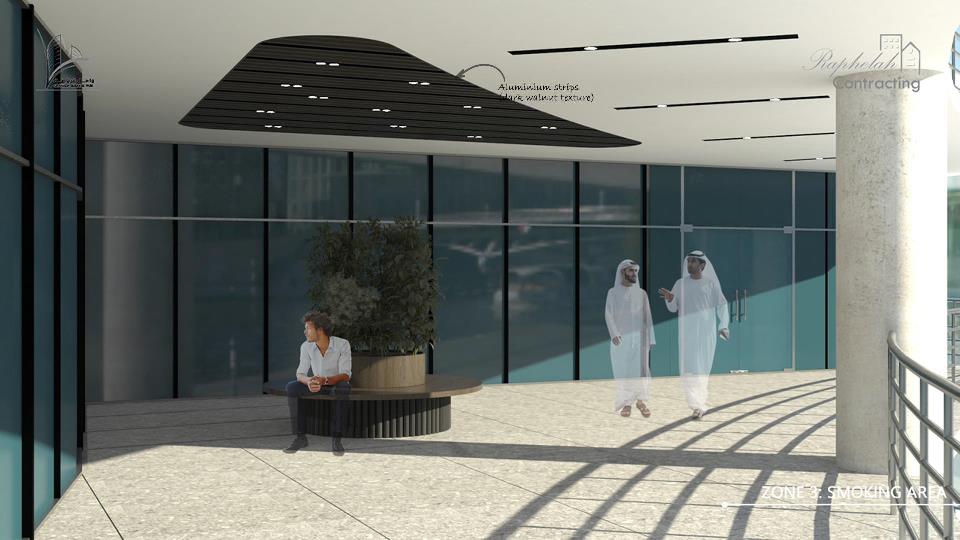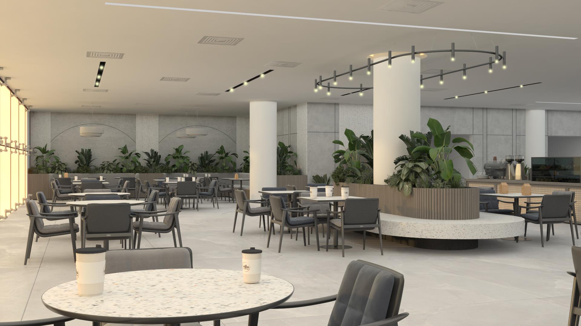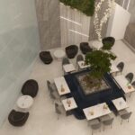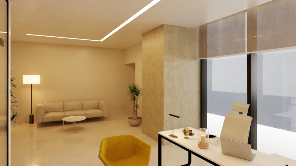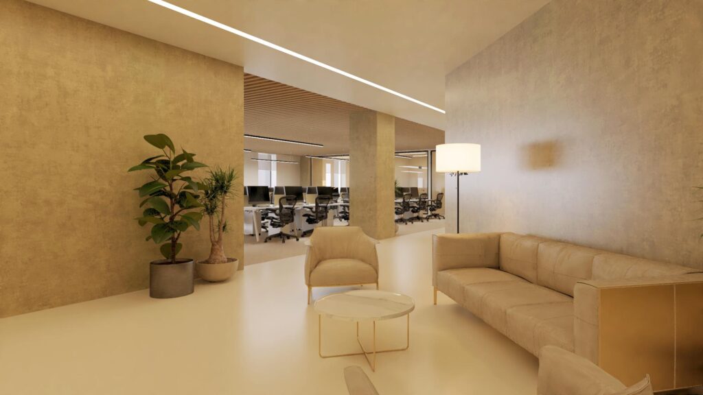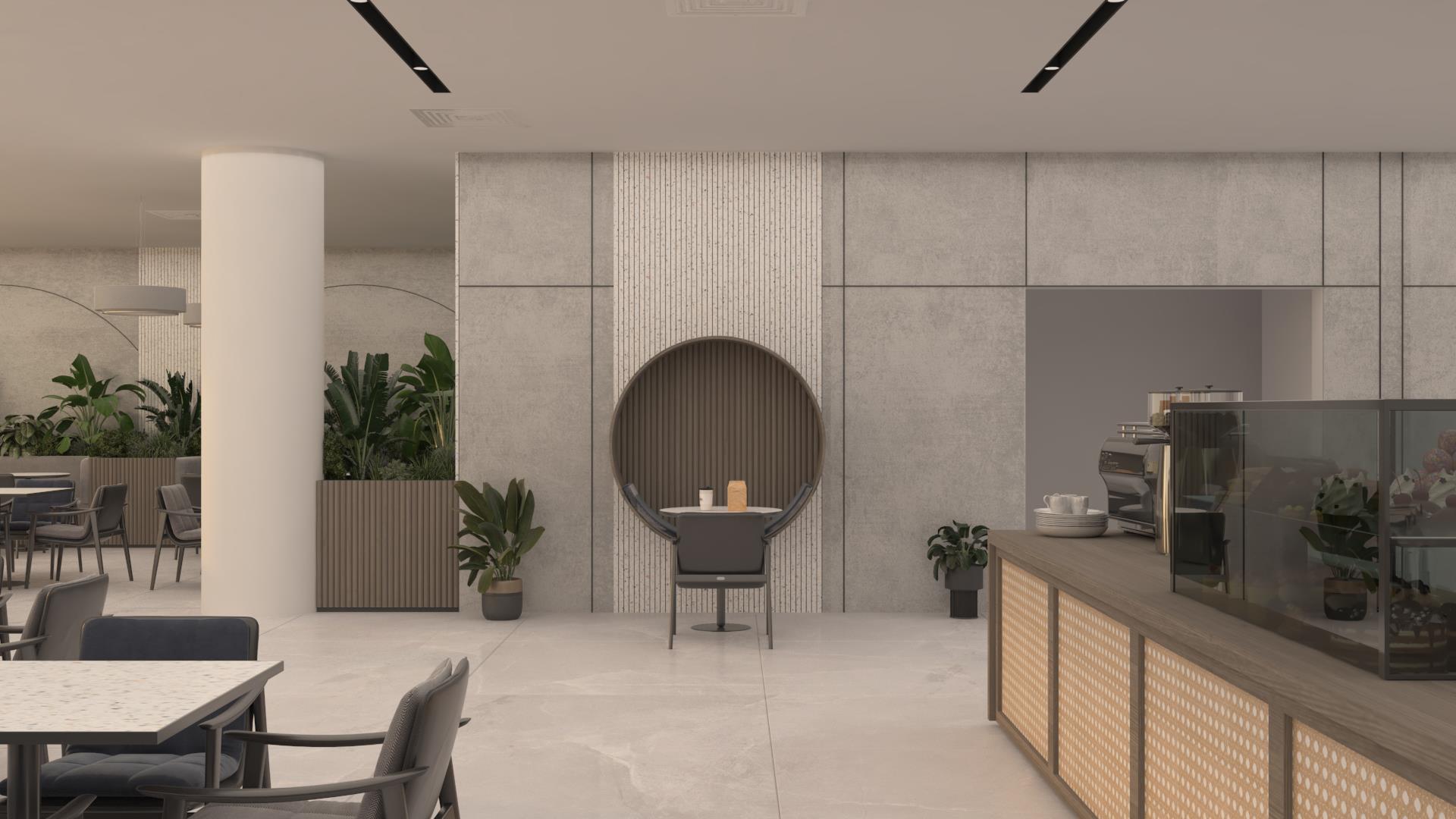 The Granada Business Park project involved multiple interior design proposals, covering reception, corridors, outdoor smoking areas, and prayer areas. Each space was designed with functionality, aesthetics, and user comfort in mind, delivering cohesive and modern solutions for the business park.