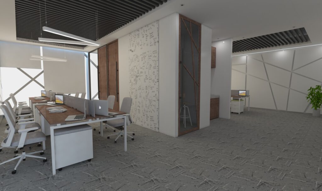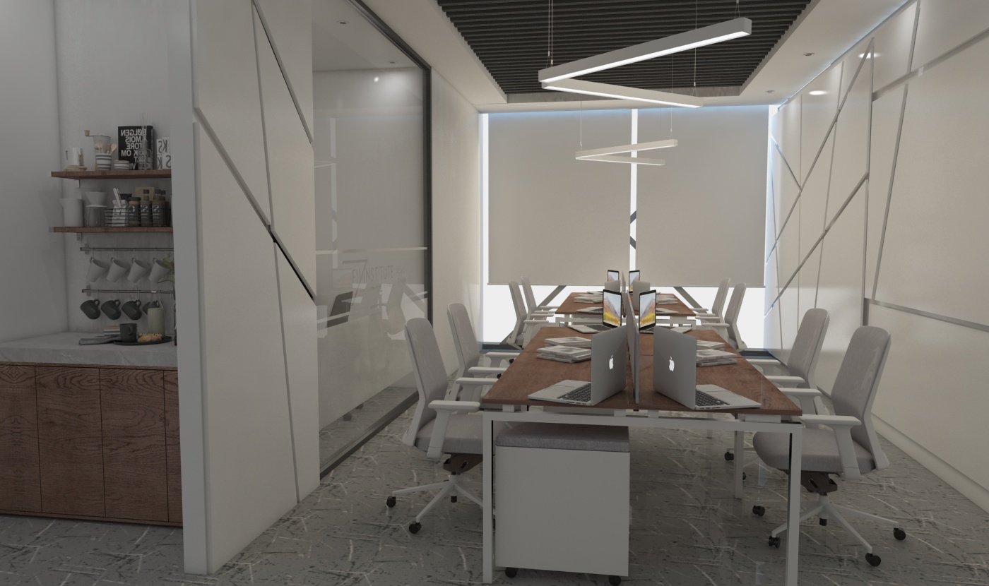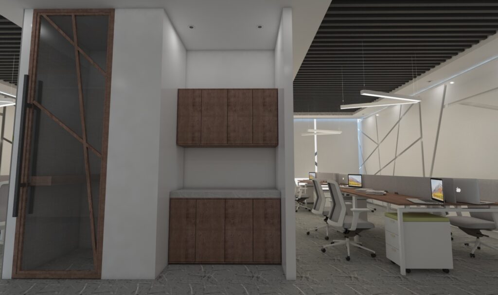 The SOW Including (Ceiling –Lighting –Flooring –Partitioning -Wooden decoration –Plants–Reception Area–Wall Painting –New W.C –Redesign the pantry area).